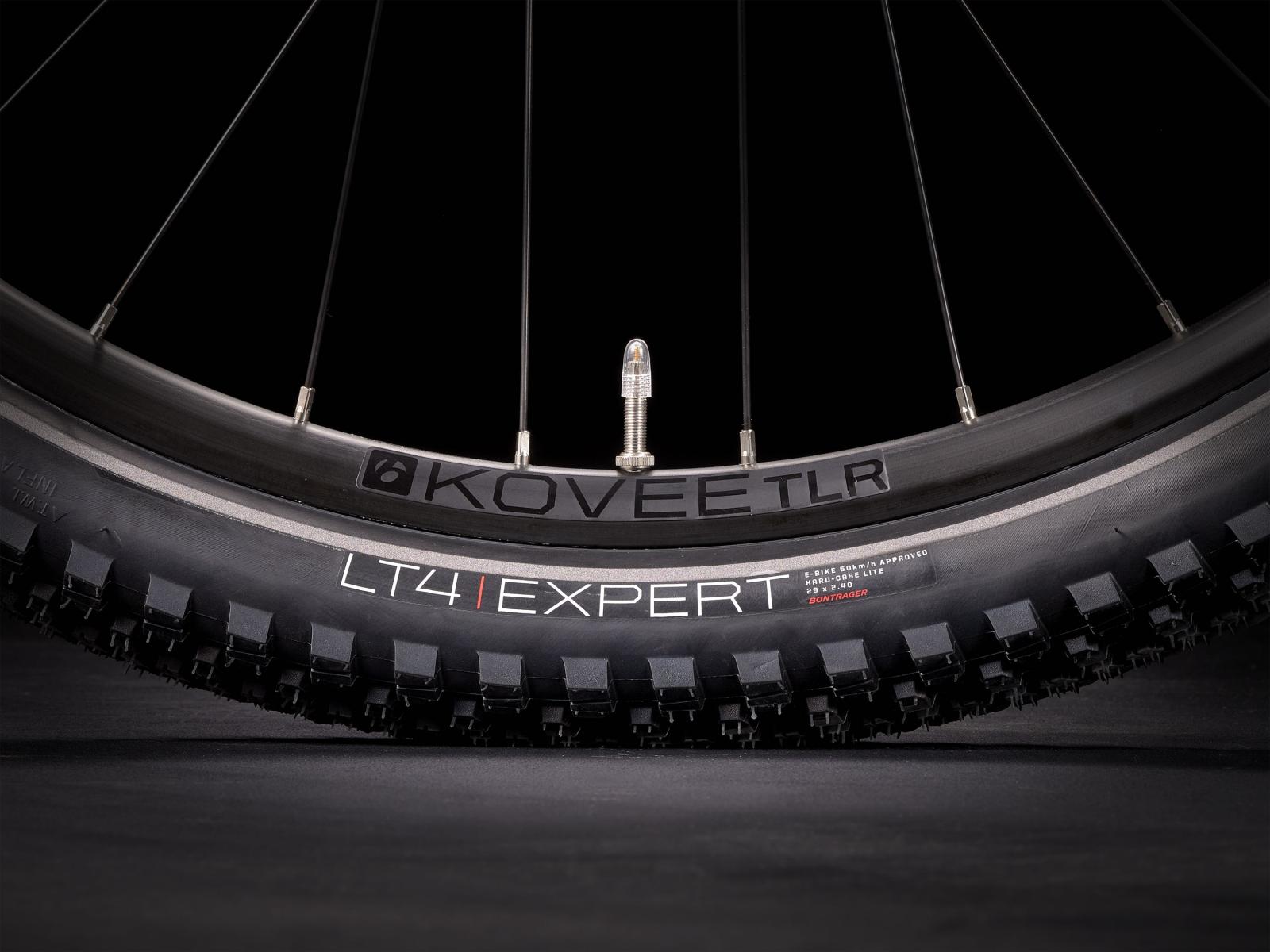Reifen: Bontrager LT4 Expert, reflektierender Streifen, Drahtwulstkern, 60 TPI, 27.5 x 2.40