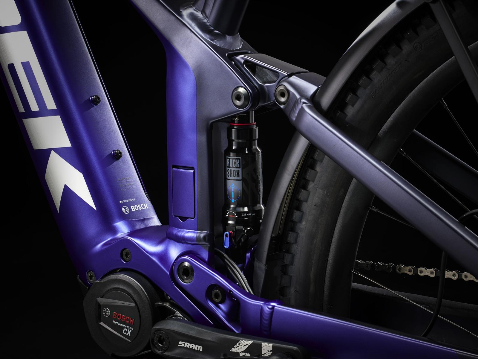 Einen robusten Aluminiumrahmen mit vollständig integriertem und ausdauerndem 625-Wh-Akku, ein leistungsstarkes Bosch Performance CX-Antriebssystem zur Tretunterstützung bis 25 km/h, eine Smart System LED Remote und ein Kiox-Display, das mit oder ohne Smartphone genutzt werden kann. Außerdem gibt es eine 120-mm-Federgabel, einen 100-mm-Dämpfer, kraftvolle hydraulische 4-Kolben-Scheibenbremsen, Bontragers Line Comp 30-Laufräder, einen Shimano XT 12fach-Antrieb und eine Variosattelstütze zum Absenken des Sattels auf Abfahrten.