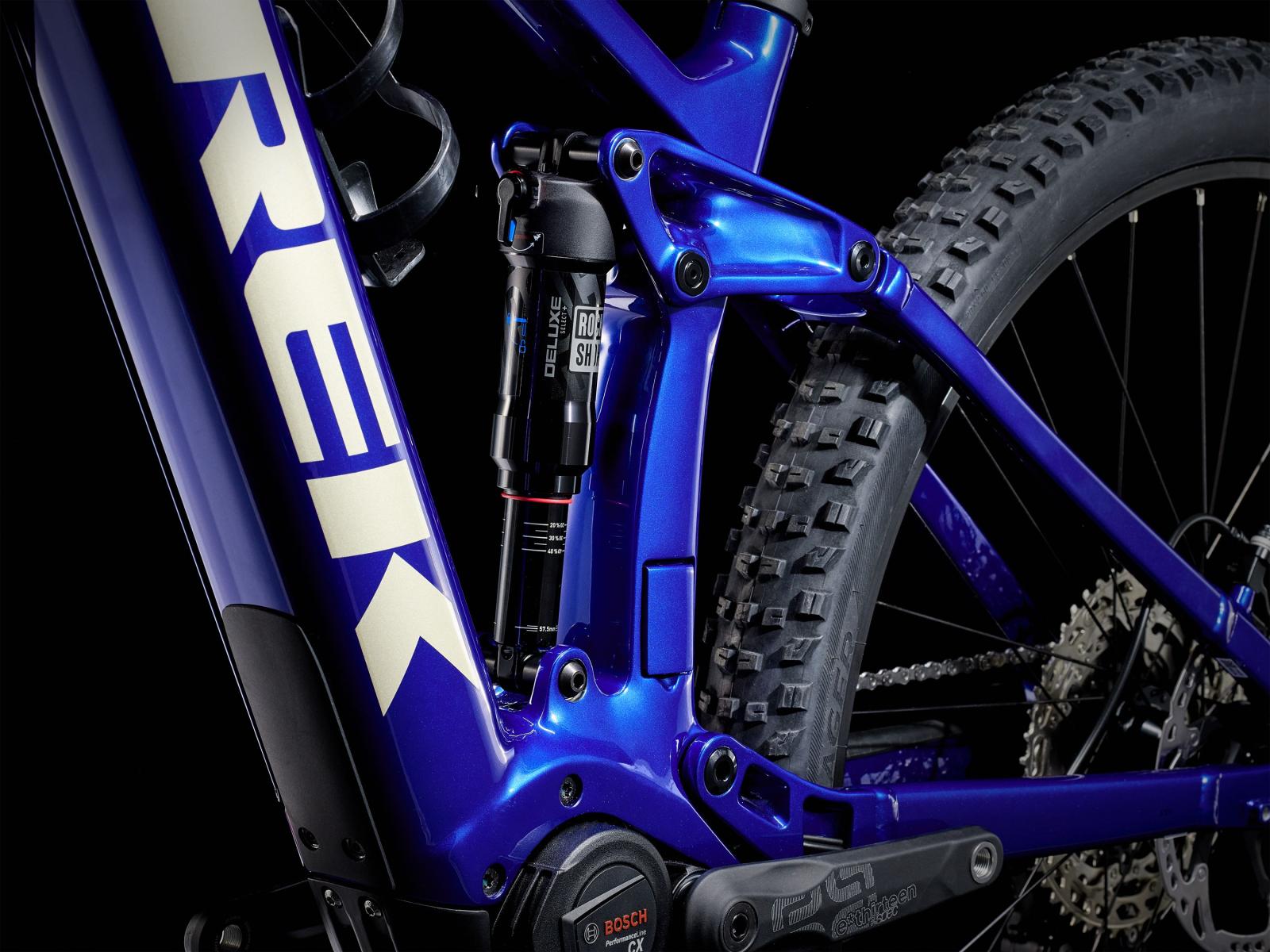 Einen Rahmen aus OCLV Mountain Carbon mit einem 750 Wh starken RIB-Akku, eine super schnell ansprechende RockShox 35 Gold RL-Gabel mit 160 mm Federweg, DebonAir-Feder, Motion Control-Dämpfung und Lockout, einen RockShox Deluxe+ Select-Dämpfer mit 150 mm Federweg, den neuesten Bosch Performance Line CX-Motor mit Smart System zur Antriebsunterstützung bis 25 km/h samt Bluetooth® LED Remote intuitive Konnektivität und zur Aktivitätsverfolgung über die eBike Flow App. Für geschmeidige Gangwechsel sorgt der Deore 12fach-Antrieb mit extragroßem Klettergang mit 52 Zähnen.