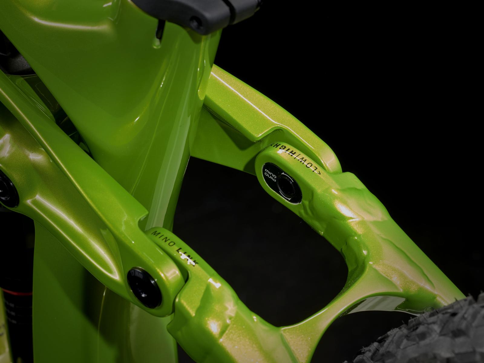 Rahmen: Hauptrahmen aus OCLV Mountain Carbon, 1,8" niedrigeres Oberrohr, kompatibel mit Bosch System Controller, Removable Integrated Battery (RIB), Knock Block 2.0, geführte interne Zugverlegung, 34,9 mm Sitzrohrdurchmesser, Magnesiumumlenkhebel, Motor Armor, Mino Link, ABP, Boost148, 12 mm Steckach