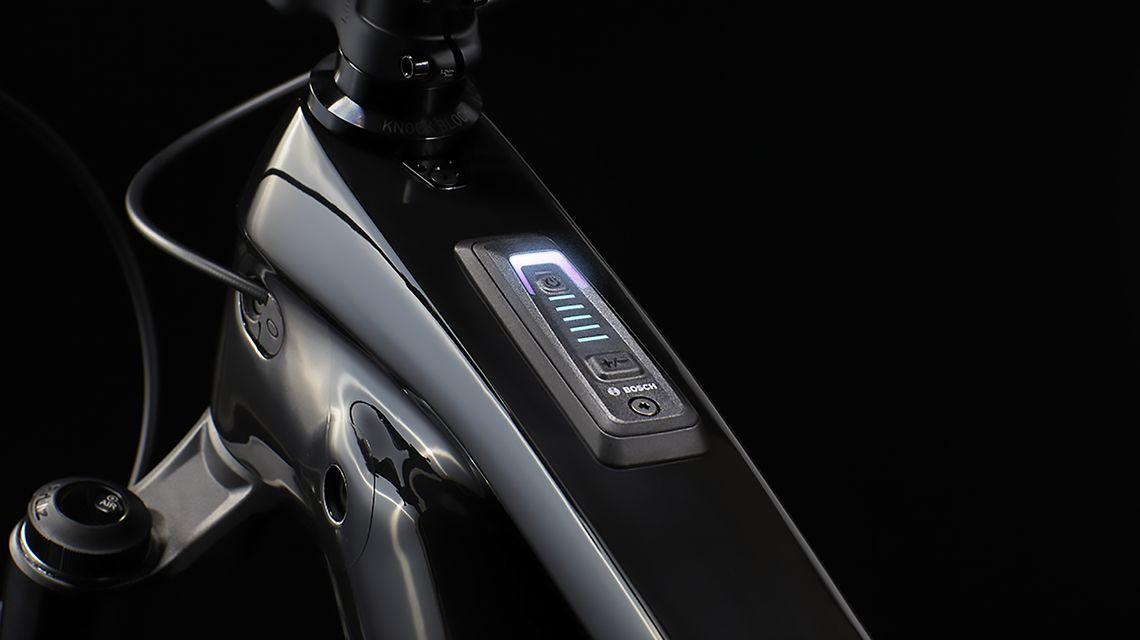 Der System Controller gibt dir einen schnellen Überblick über den aktuellen Unterstützungsmodus und den Akkustand, ohne deine Aufmerksamkeit von der Straße abzulenken. Er ist bündig im Oberrohr integriert und dank LED-Leuchten gut ablesbar. Außerdem lässt er sich über Bluetooth mit der eBike Flow-App verbinden, um auf Fahrdaten zugreifen und Systemaktualisierungen durchführen zu können.