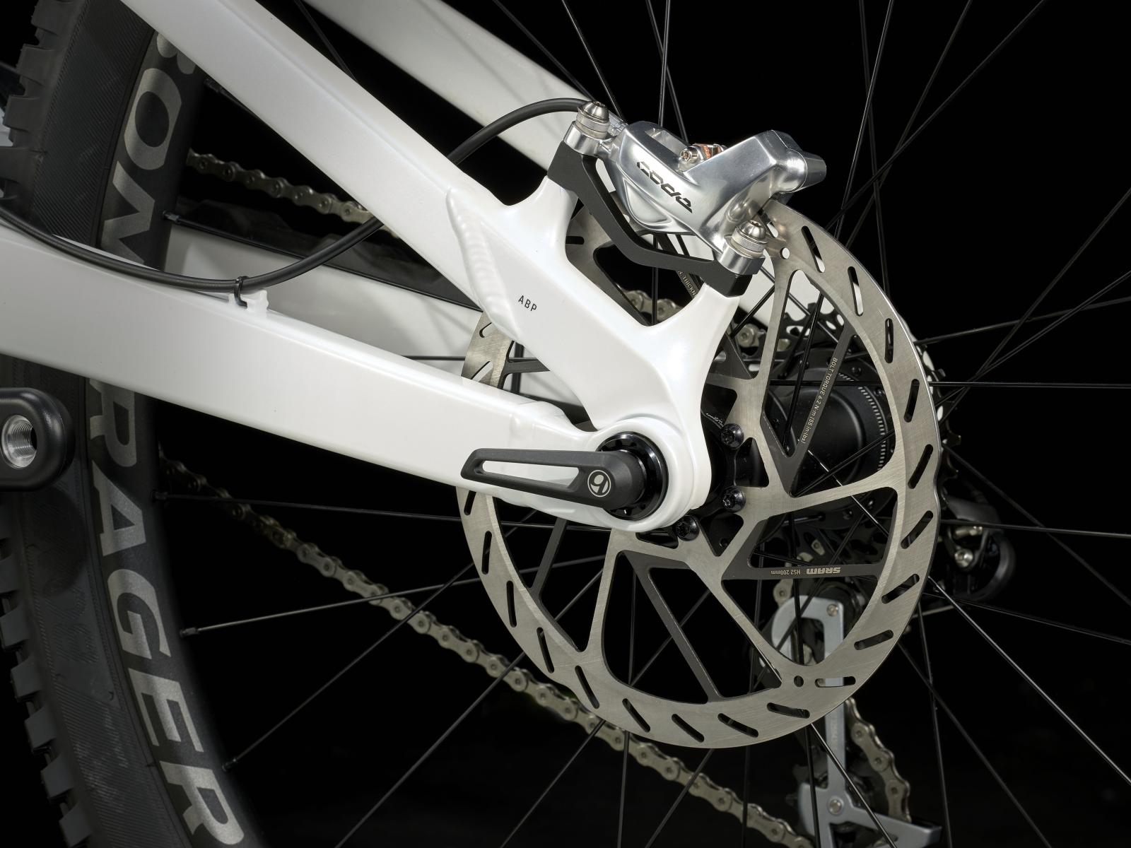 - Die Eliminierung des Pedalrückschlags erhöht die Stabilität und Kontrollbarkeit des Bikes auf brutalen Abfahrten und vor allem beim Landen von Jumps und Drops.