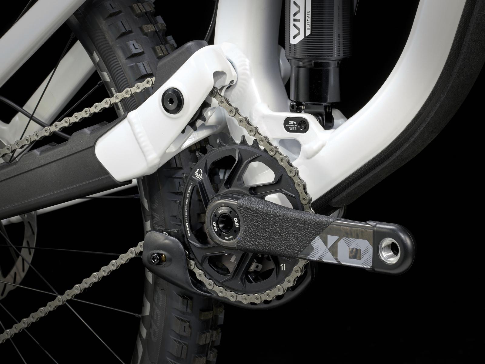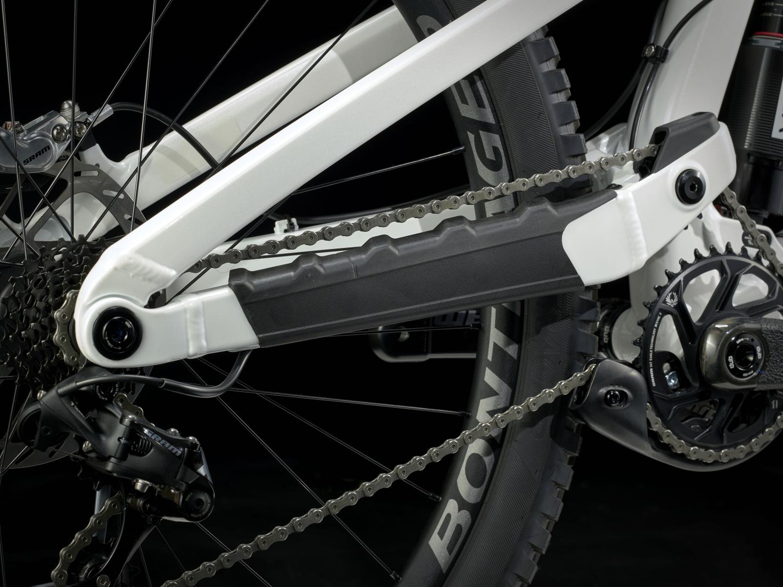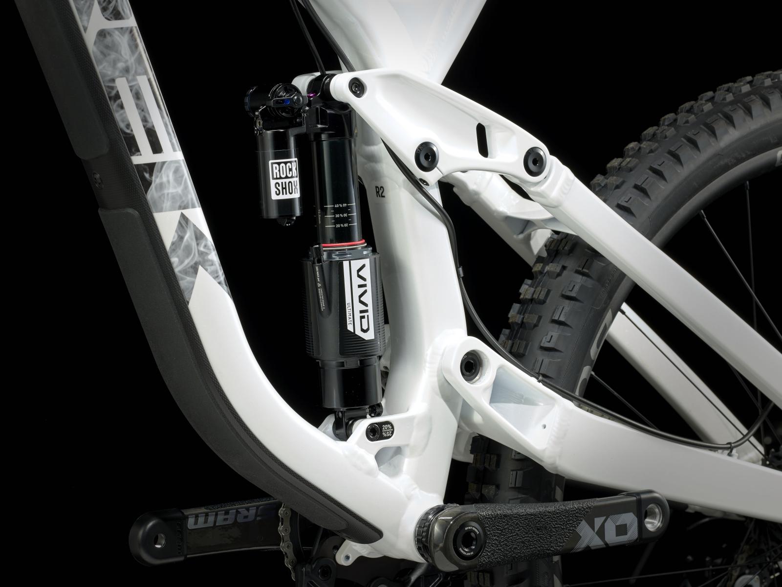 - Das neue Fahrwerkslayout mit hohem Dreh- und Umlenkpunkt verbessert die Traktion, unterstützt höhere Geschwindigkeiten und reduziert den Pedalrückschlag für mehr Stabilität.