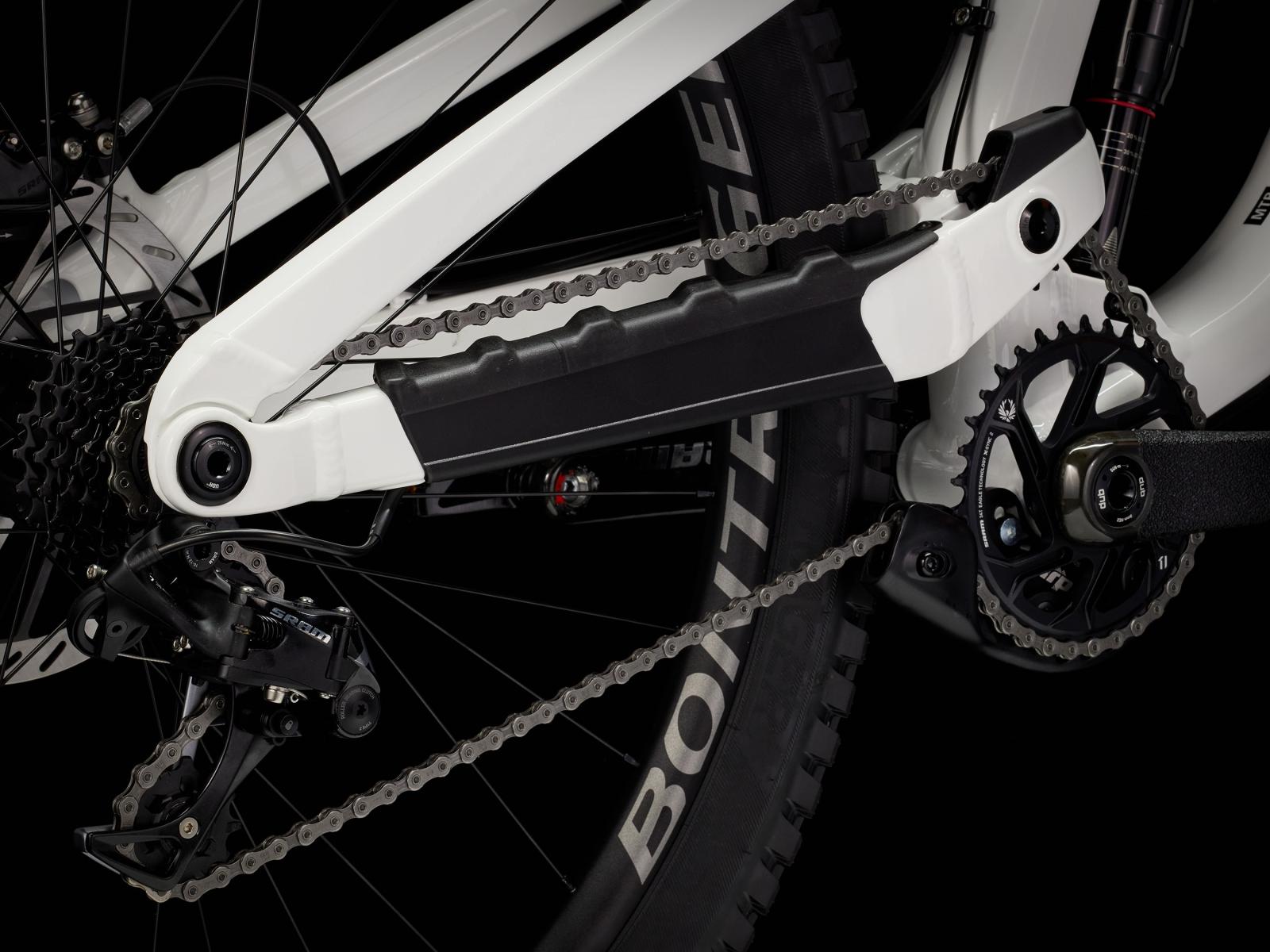 - Das neue Fahrwerkslayout mit hohem Dreh- und Umlenkpunkt verbessert die Traktion, unterstützt höhere Geschwindigkeiten und reduziert den Pedalrückschlag für mehr Stabilität.