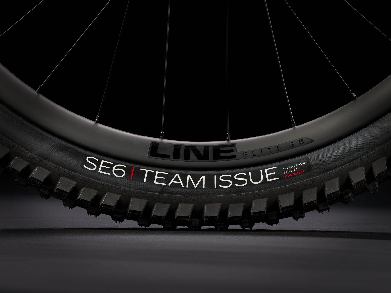 Reifen: Bontrager SE5 Team Issue, Tubeless Ready, Core Strength-Flankenschutz, Aramidwulstkern, 120 TPI, 29 x 2.50 // Bontrager SE6 Team Issue, Tubeless Ready, Core Strength-Flankenschutz, Aramidwulstkern, 120 TPI, 29 x 2.50