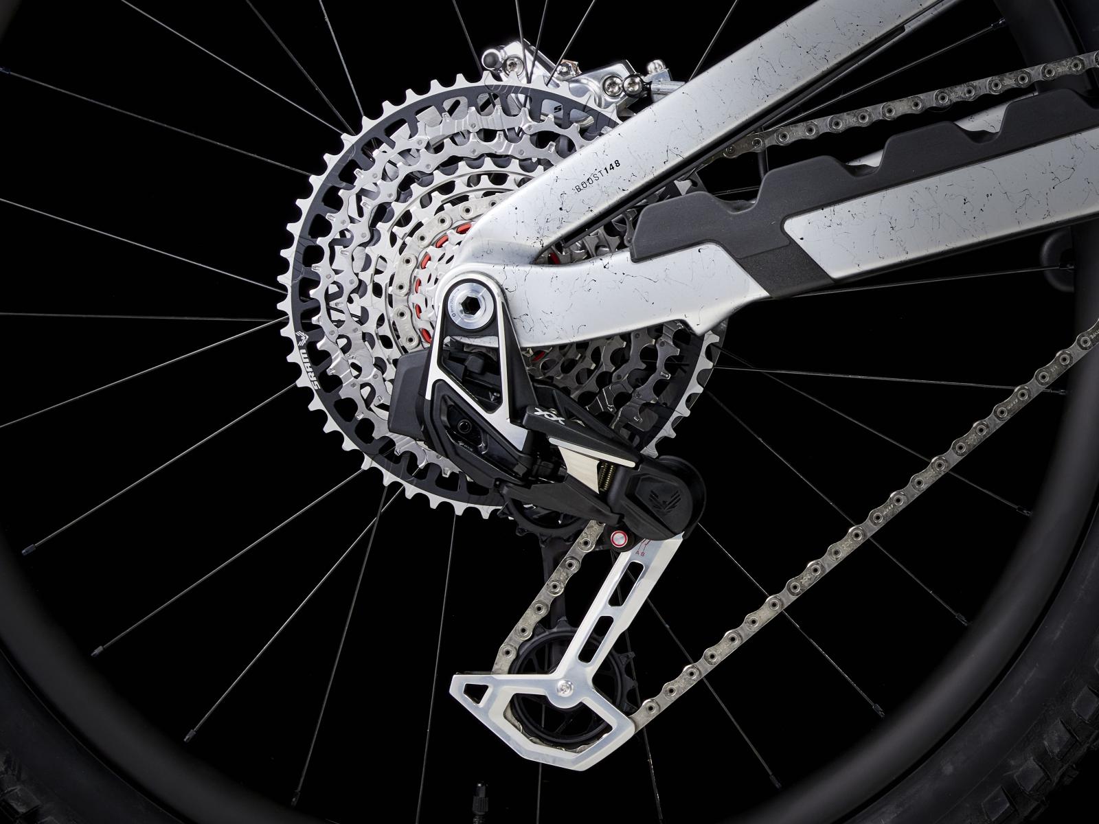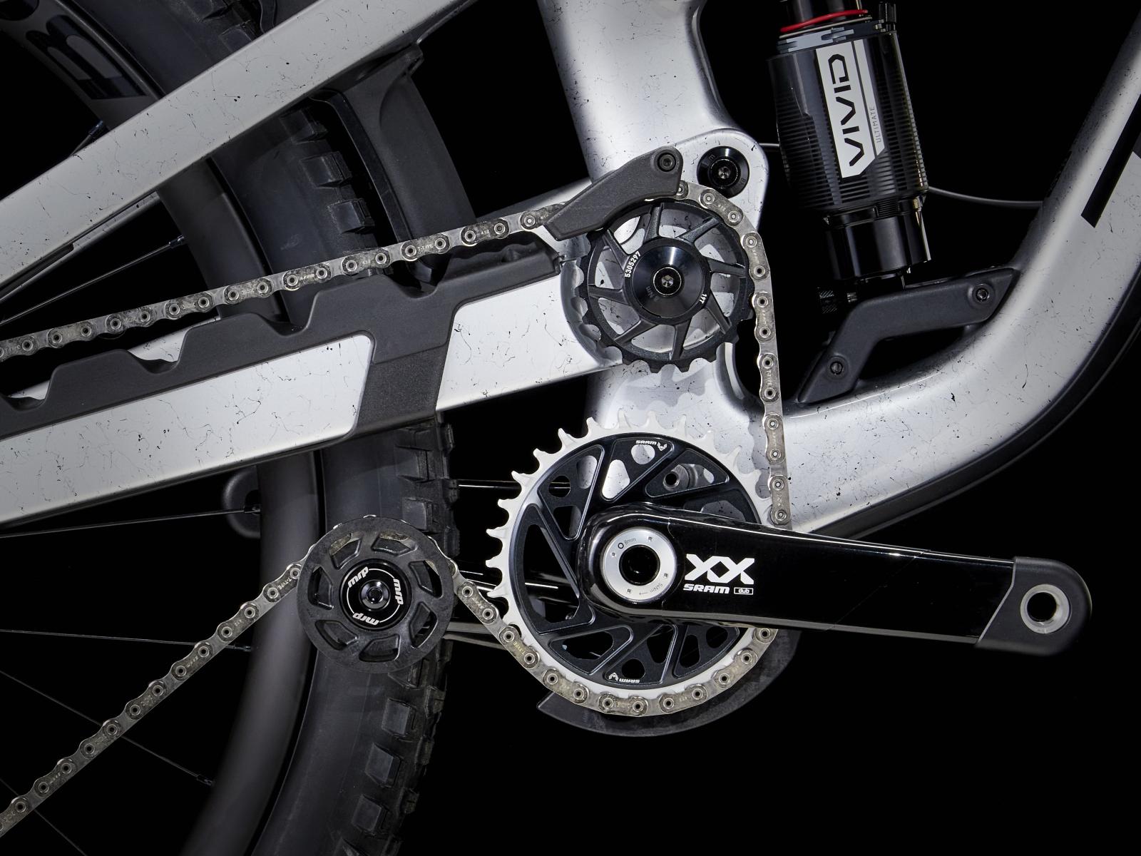 Die große obere Umlenkrolle am Slash beseitigt nicht nur den Pedalrückschlag des hohen Drehpunkts, sondern seine Größe und Positionierung garantiert zudem optimale Anti-Squat-Werte für eine hohe Antriebseffizienz. Die untere Umlenkrolle reduziert die Kettenspannung am Schaltwerk für geschmeidigere Gangwechsel und eine optimale Fahrwerks-Performance.