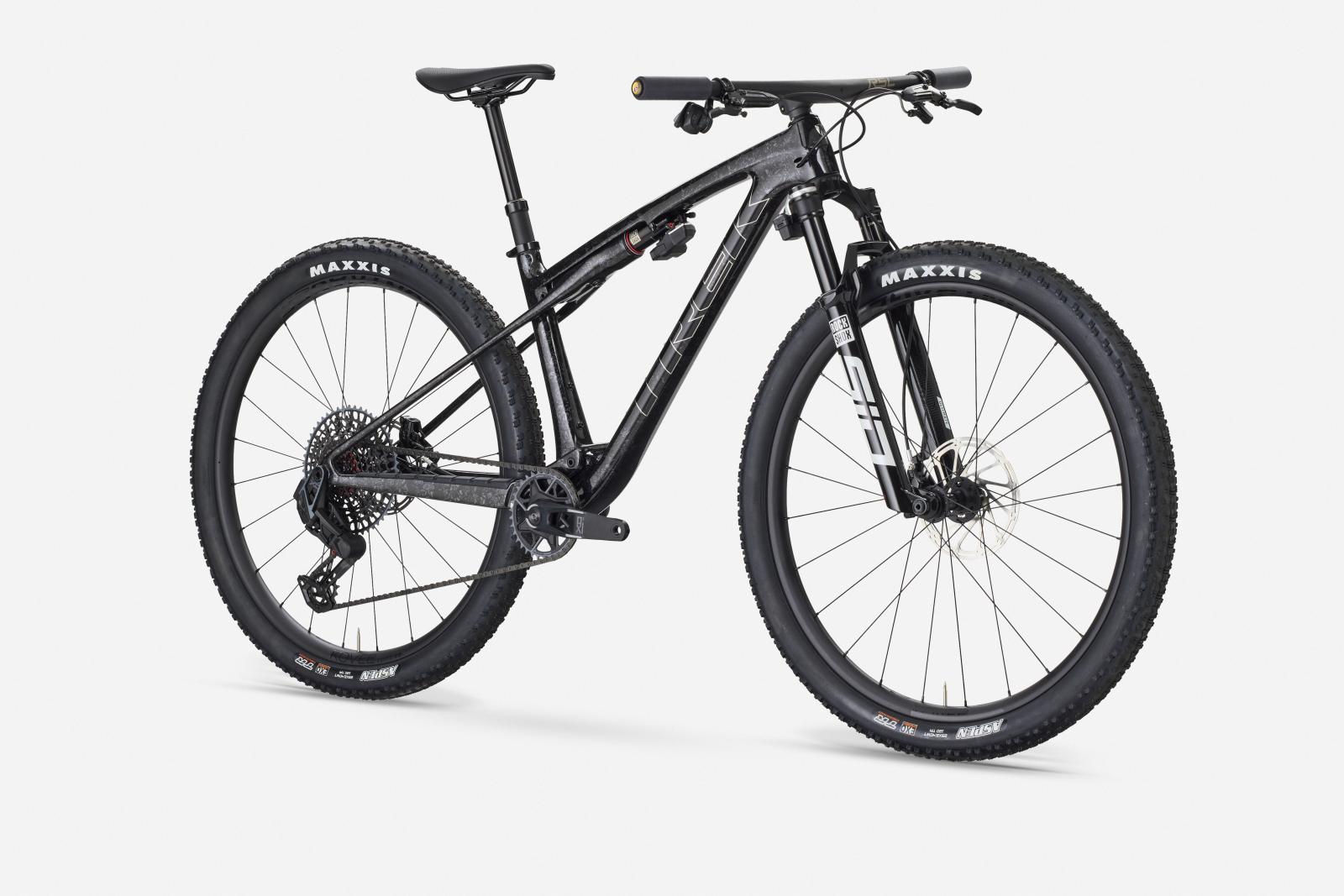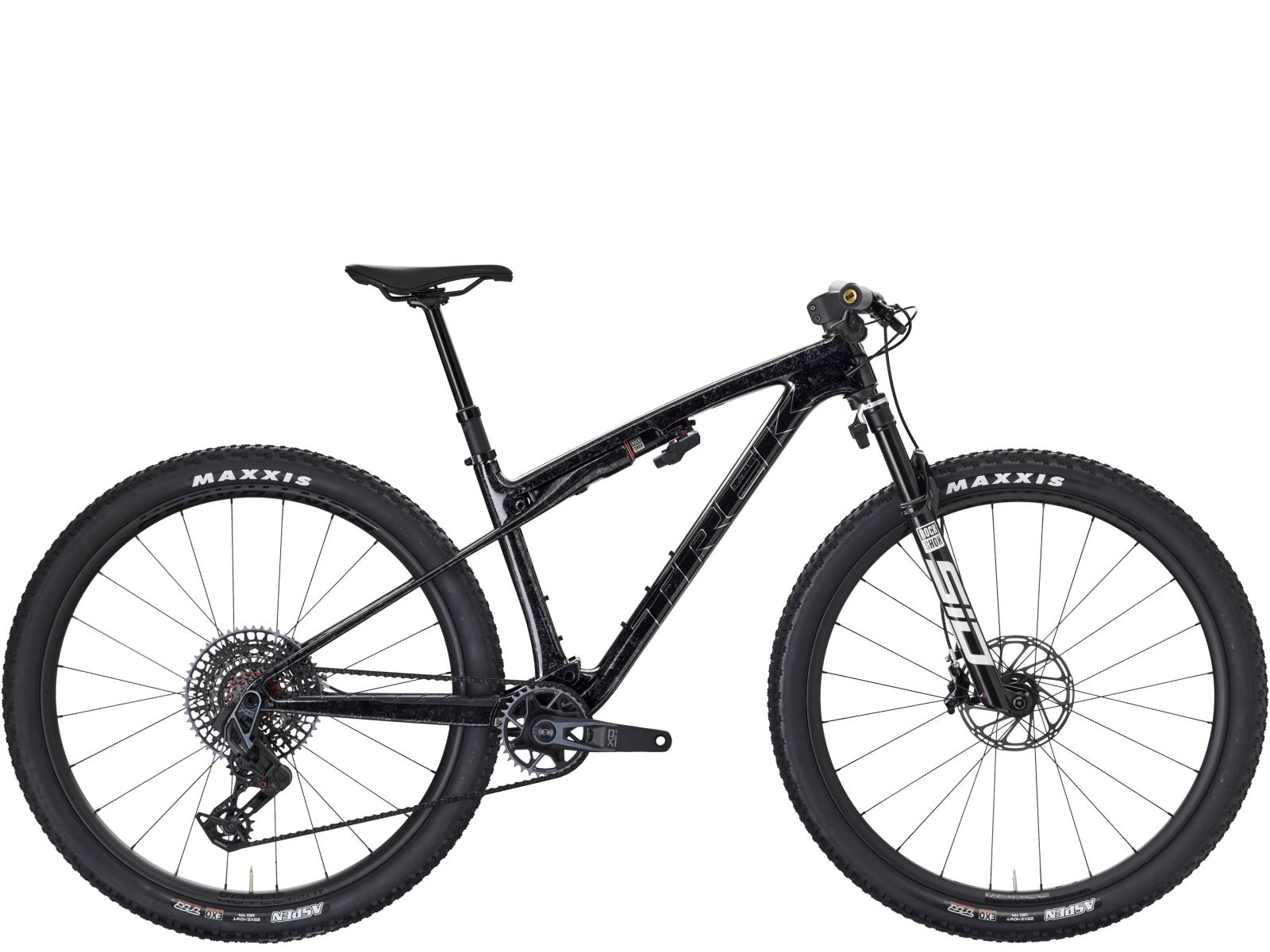 Einen federleichten Rahmen aus hochmoduligem SLR OCLV Mountain Carbon mit moderner XC-Geometrie. Außerdem bekommst du eine RockShox SID SL Ultimate 110-mm-Federgabel mit DebonAir Federung und Charger Race Day Dämpfung und einen RockShox SIDLuxe IsoStrut 80-mm-Hinterbaudämpfer – natürlich komplett mit Flight Attendant Technologie von RockShox. Eine ultraleichte, komplett drahtlose elektronische SRAM X0 AXS 12fach-Transmission, Bontrager Kovee RSL Carbonlaufräder, eine integrierte Bontrager RSL Lenker/Vorbau-Einheit aus Carbon, eine drahtlose RockShox Reverb AXS Variosattelstütze und hydraulische SRAM Motive Silver 4-Kolben-Scheib