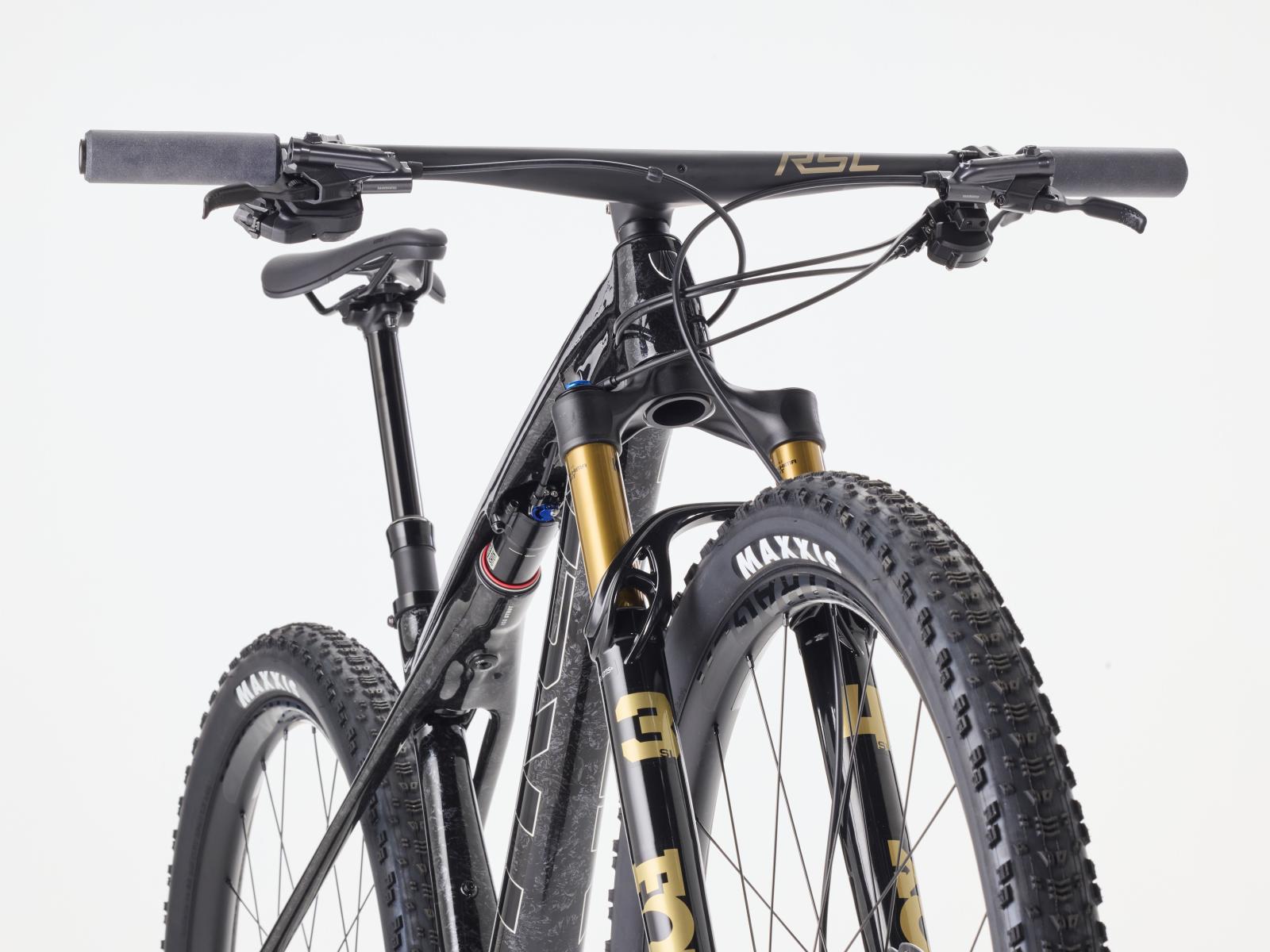Einen federleichten Rahmen aus hochmoduligem SLR OCLV Mountain Carbon mit moderner XC-Geometrie. Dazu gibts eine FOX Factory 34 SL Step-Cast 110-mm-Federgabel mit Float EVOL Luftfederung, GRIP SL 2-Positionen-Dämpfung und Dual-Remote-Lockout und einen RockShox SIDLuxe IsoStrut-Dämpfer mit 80 mm Federweg. Shimanos brandneuer drahtloser XT Di2 12fach-Antrieb, Bontrager Kovee Elite 30 Carbonlaufräder, eine integrierte Bontrager RSL Lenker/Vorbau-Einheit aus Carbon, eine Bontrager Line Variosattelstütze und hydraulische Shimano XT M8200 Scheibenbremsen runden das Ausstattungspaket ab.