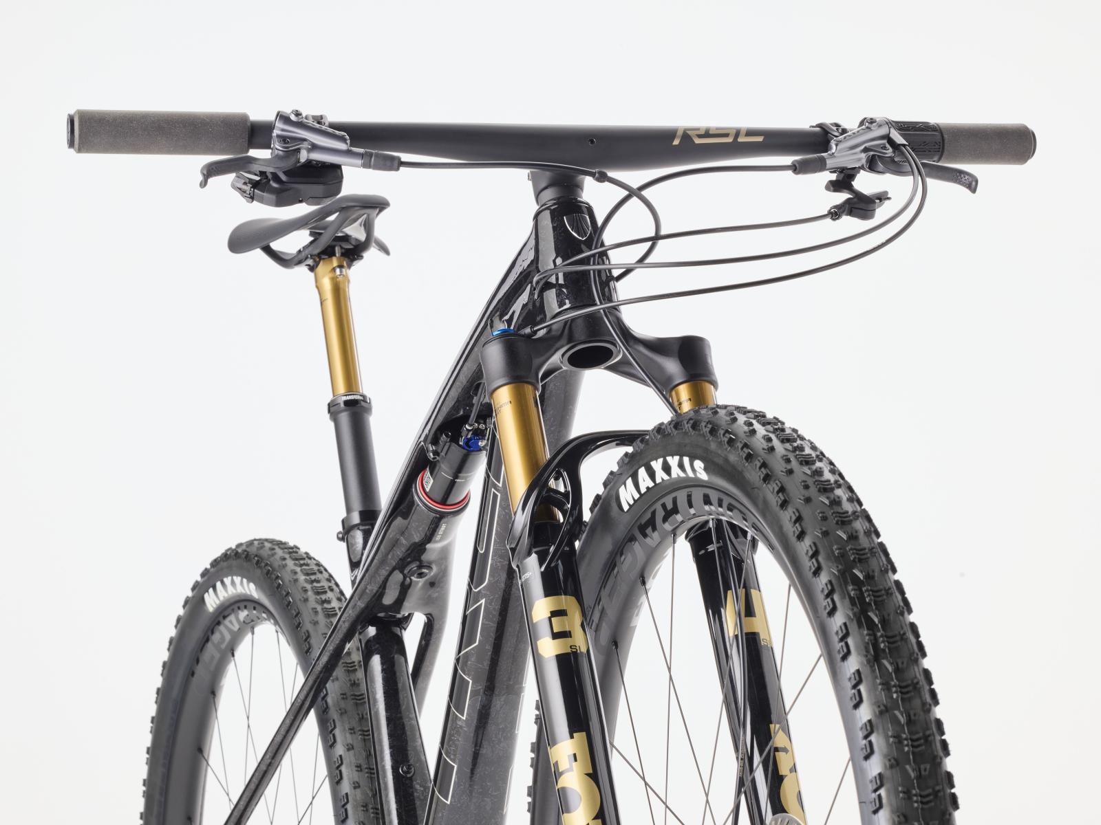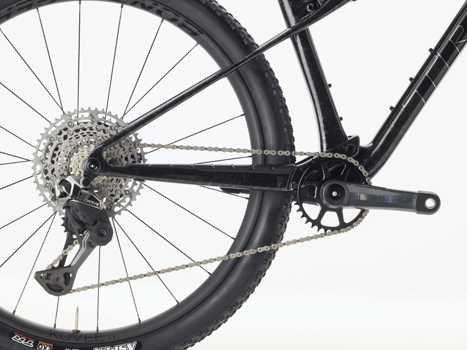 Einen federleichten Rahmen aus High-Modulus SLR OCLV Mountain Carbon mit moderner XC-Geometrie. Zudem eine Fox Factory 34 SL Step-Cast 110-mm-Federgabel mit Float EVOL Luftfederung, GRIP SL 2-Positionen-Dämpfung und Dual Remote-Lockout sowie einen RockShox SIDLuxe IsoStrut-Dämpfer mit 80 mm Federweg. Ein brandneuer drahtloser Shimano XTR Di2 12fach-Antrieb, Bontrager Kovee RSL Carbonlaufräder, eine integrierte Bontrager RSL Lenker/Vorbau-Einheit aus Carbon, eine FOX Transfer SL Variosattelstütze und hydraulische Shimano XTR M9200 Scheibenbremsen runden das Ausstattungspaket ab.