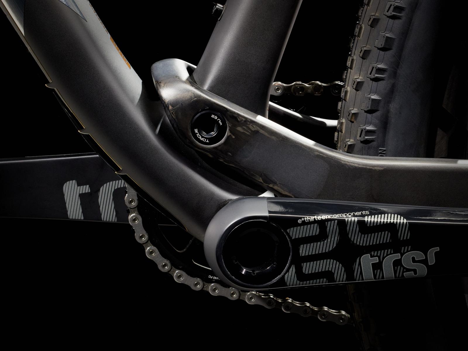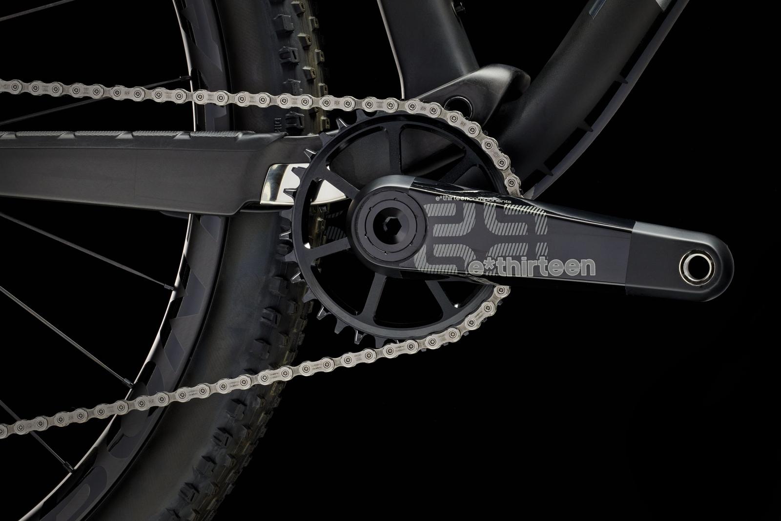 Kurbelsatz: e*thirteen TRS Race Carbon, 30 mm Achsdurchmesser, Aluminiumkettenblatt (34 Z.), 52 mm Kettenlinie, 175 mm Kurbelarmlänge