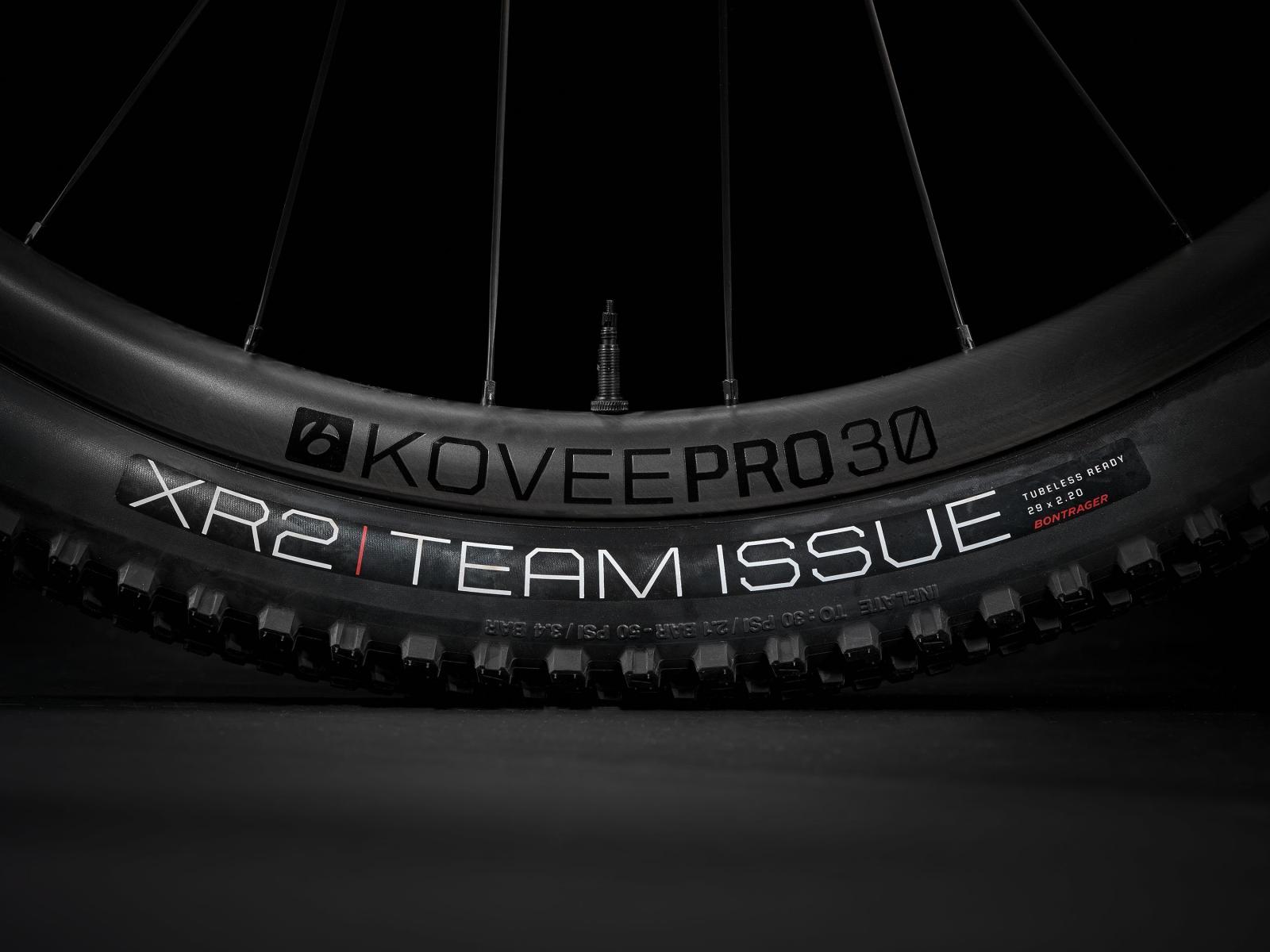 Räder: Bontrager Kovee Pro 30 carbon, Tubeless Ready, 6-Loch-Scheibenaufnahme, Boost110, 15 mm Steckachse, 29"