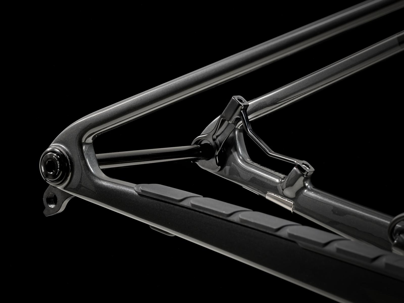 - Gelenklose Sitzstreben sparen Gewicht und tragen mit ihrer Flexibilität dazu bei, Unebenheiten auf dem Trail zu schlucken.