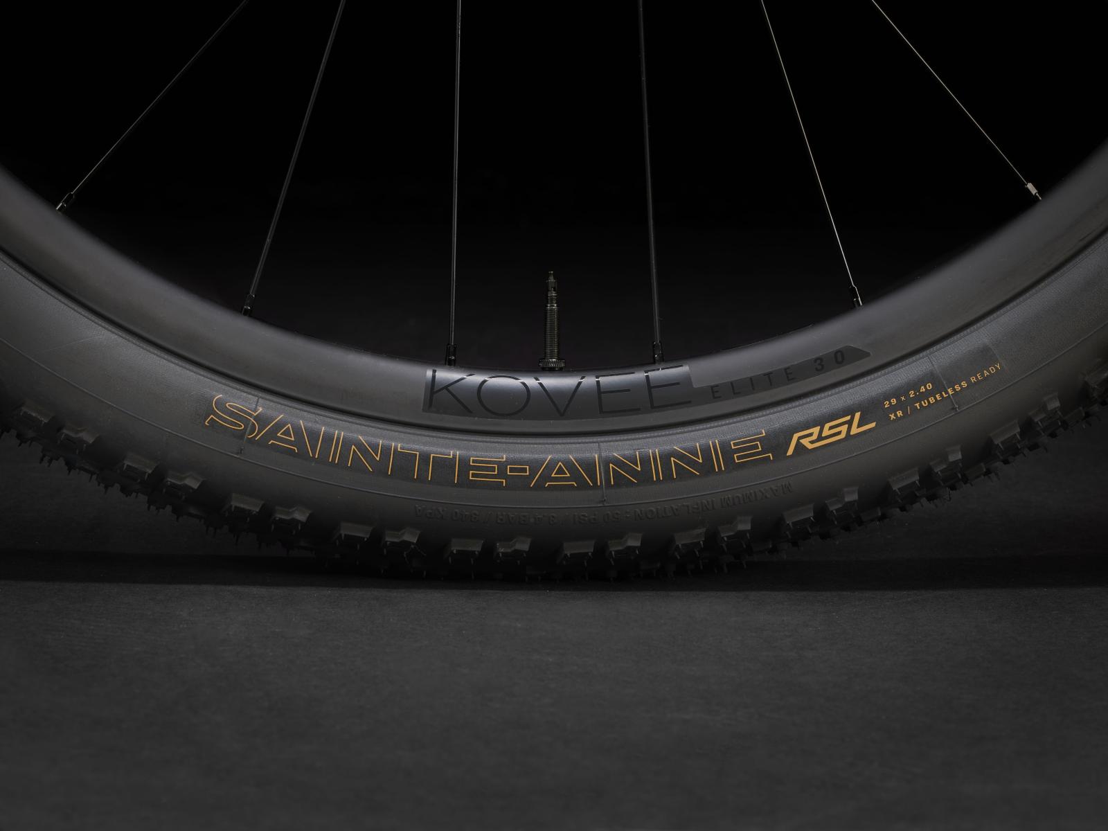 Reifen: Bontrager Sainte-Anne RSL XR, Tubeless-Ready, Zweikomponenten-Mischung, Aramidwulstkern, 220 TPI, 29 x 2.40