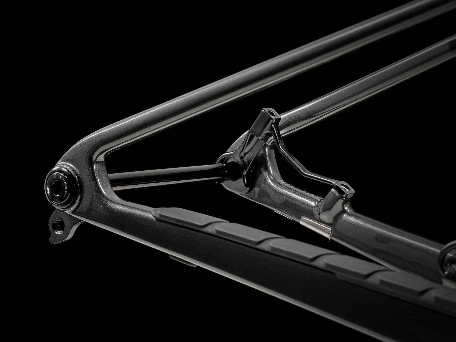- Gelenklose Sitzstreben sparen Gewicht und tragen mit ihrer Flexibilität dazu bei, Unebenheiten auf dem Trail zu schlucken.