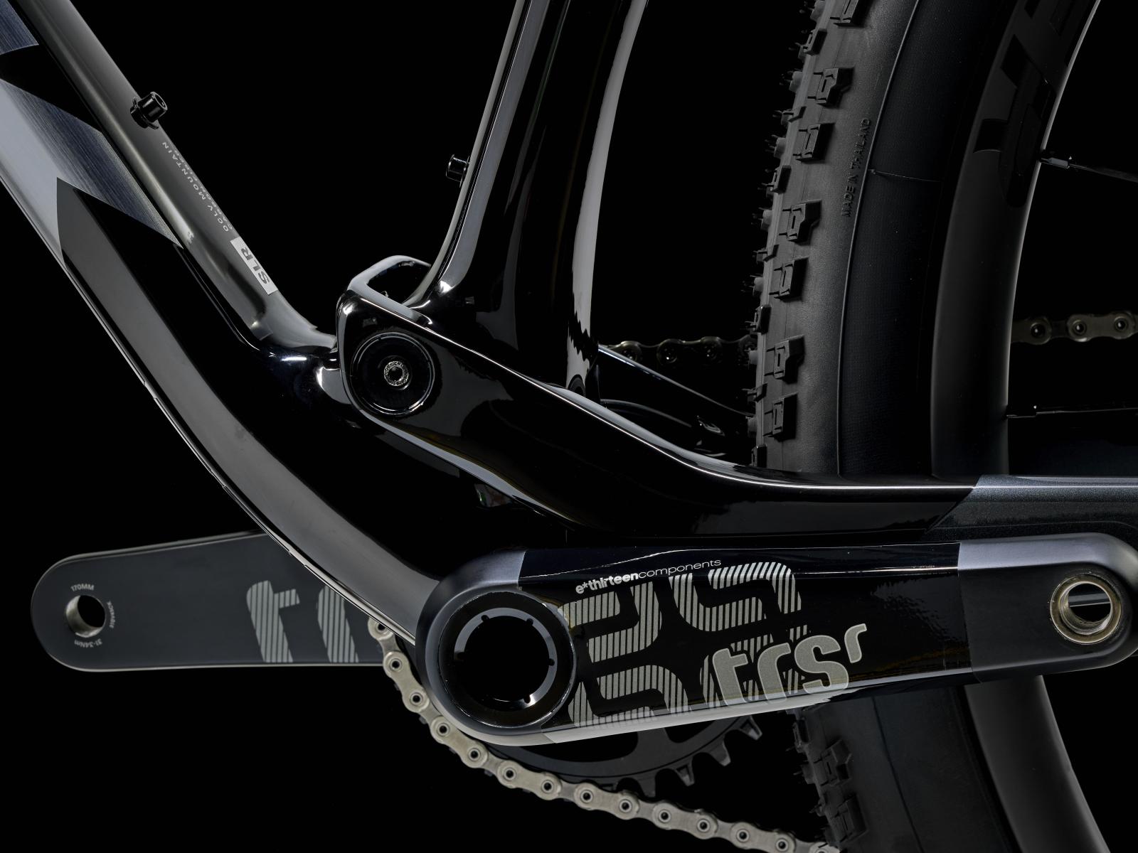 Kurbelsatz: e*thirteen TRS Race Carbon, 30 mm Achsdurchmesser, Aluminiumkettenblatt (34 Z.), 55 mm Kettenlinie, 175 mm Kurbelarmlänge