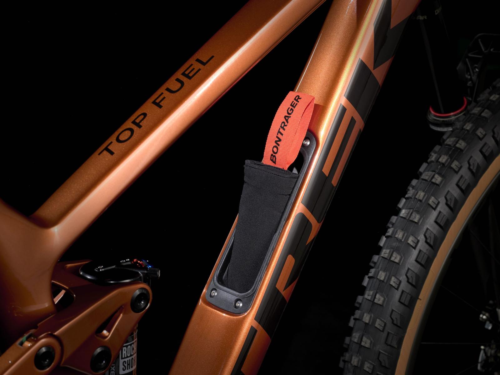 - Ein schlankes, im Rahmen integriertes Staufach ermöglicht die Unterbringung von Werkzeug und Ausrüstung.