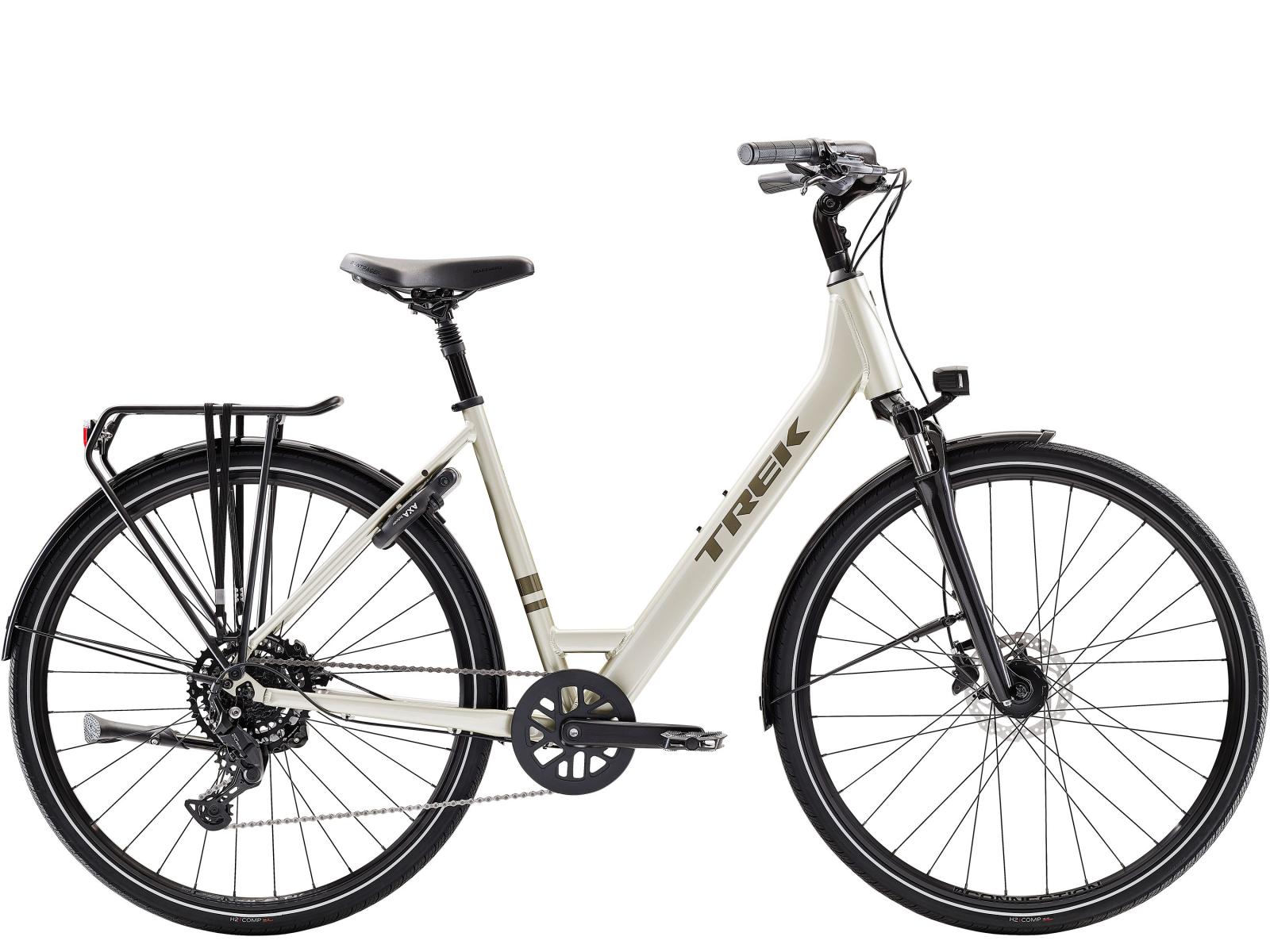 Einen leichten Aluminiumrahmen mit Lowstep-Design und einer komfortablen, aufrechten Geometrie, eine zuverlässige und langlebige Shimano CUES U4000 9-Gang-Schaltung, kraftvoll zupackende hydraulische Scheibenbremsen, einen verstellbaren Vorbau, einen gepolsterten Sattel, ergonomische Griffe, reflektierende, 40 mm breite Reifen für mehr Stabilität, eine stoßdämpfende Federgabel, eine gefederte Sattelstütze und eine über einen 3-Watt-Nabendynamo gespeiste Beleuchtung. Zudem kommt es ab Werk mit viel praktischem Zubehör, wie etwa Schutzblechen, Beleuchtung, Seitenständer, Schloss und MIK-Heckgepäckträger.